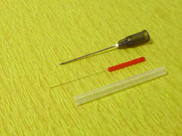 「注射針」(写真:一番上)と比較しても大変細く、太さは0.14~0.18mmと髪の毛ほどの太さです。刺すときには「鍼管」(写真:一番下)を使います。皮膚のたわみを防ぐので痛みを和らげることができます。