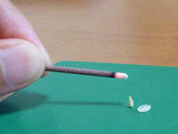 当院では半米粒大(写真:米粒の半分の大きさ)の艾(もぐさ)で心地よい程度の熱刺激を心がけています。灸は皮膚の上で艾を燃焼させる温熱療法なので、全く熱を感じないというのでは効果も期待できません。燃え尽きる瞬間に熱さというよりは「チクッ」とする一瞬の痛みとして感じることがほとんどのようです。慣れてくると心地よく感じるようになり、眠ってしまう人も多いです。